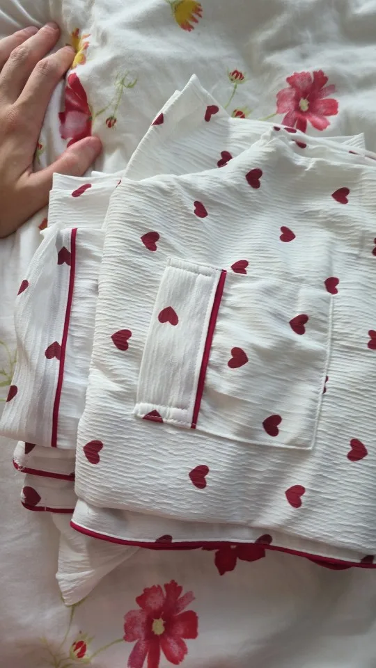Ensemble de pyjama femme deux pièces conçu pour le confort lors des saisons intermédiaires. Il comprend un cardigan léger à manches longues et un pantalon assorti, fabriqué dans un tissu froissé doux et agréable. Le design simple et élégant le rend idéal pour se détendre à la maison ou pour dormir confortablement.